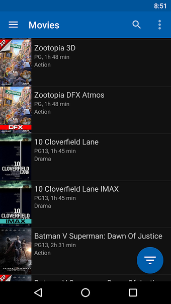 Przegląd aplikacji Galaxy Theatres na Androida